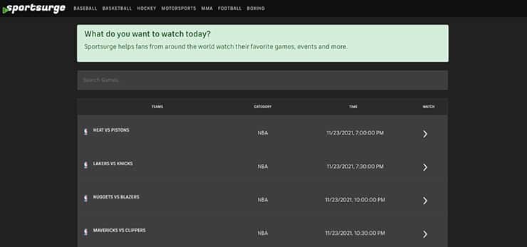 Alternative URLs: sportsurge.live, sportsurge.club, sportsurge.net